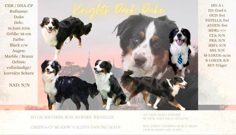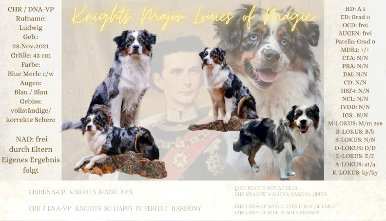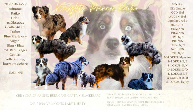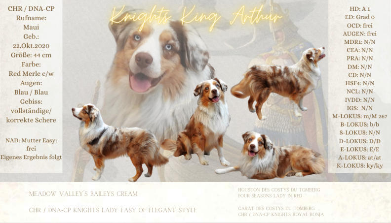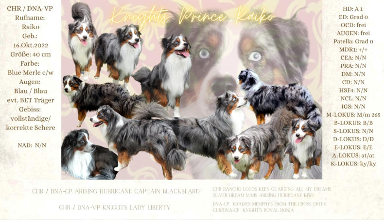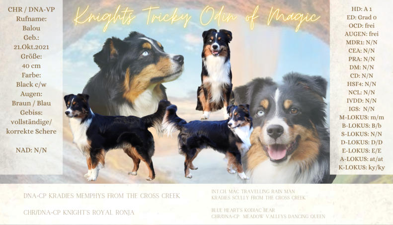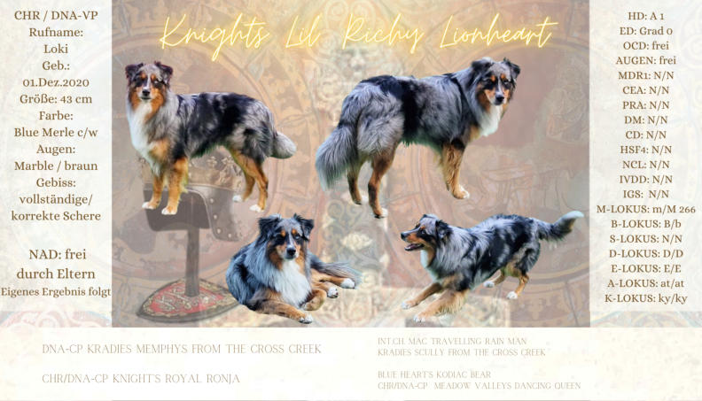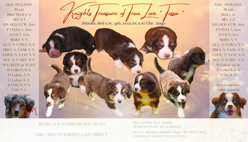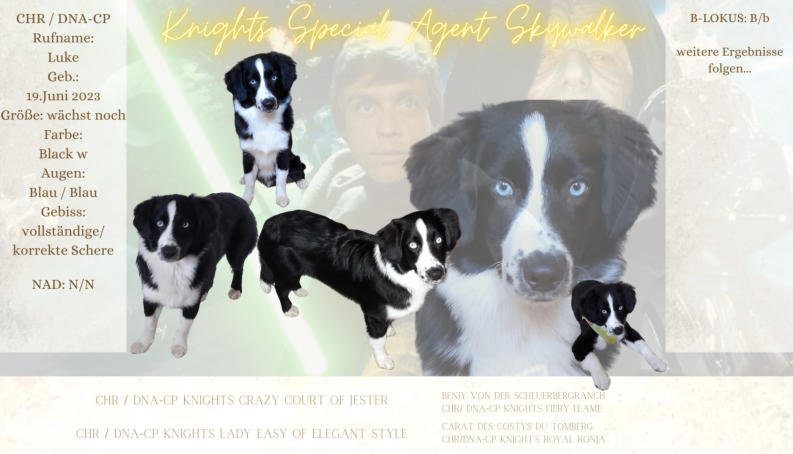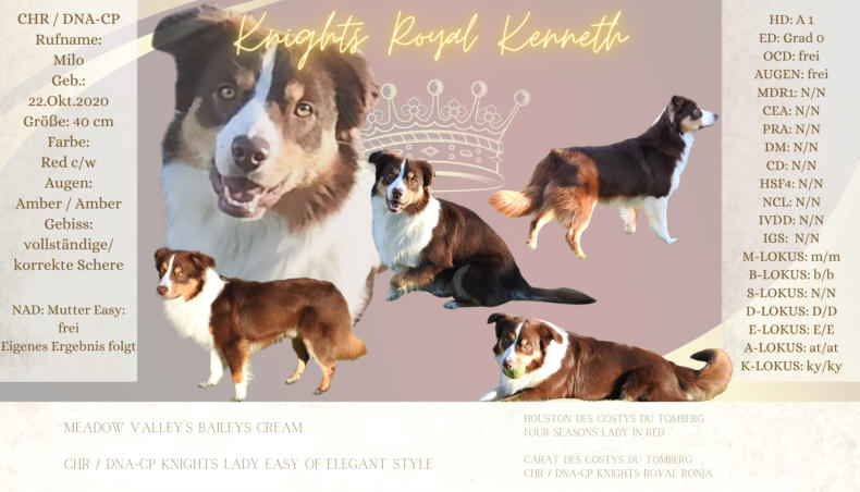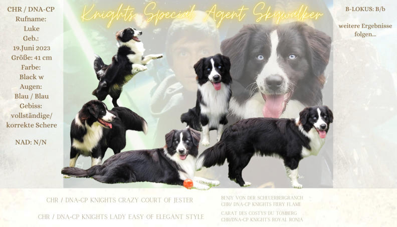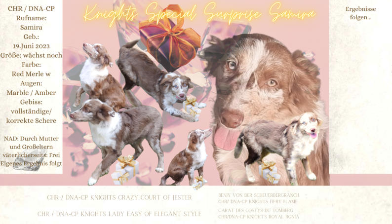 Der Kennelname “Knight” entspricht schlicht und einfach unserem Familiennamen. Der Name “Ridder” kommt aus dem Altdeutschen und heißt “Ritter”, auf englisch eben “Knight”
